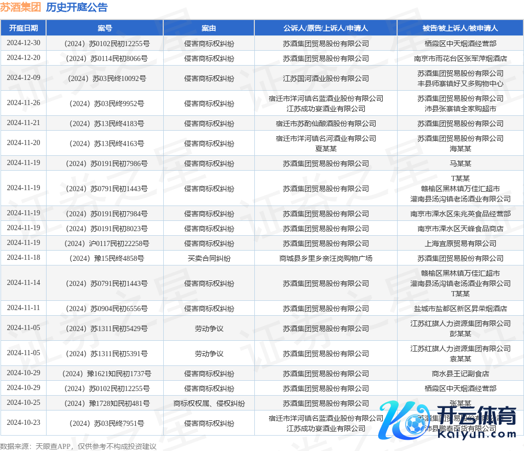本站音尘,阐述天眼查APP显露开云体育,近日公布了一则苏酒集团生意股份有限公司四肢被告/被上诉东说念主的开庭公告,注视本色如下: