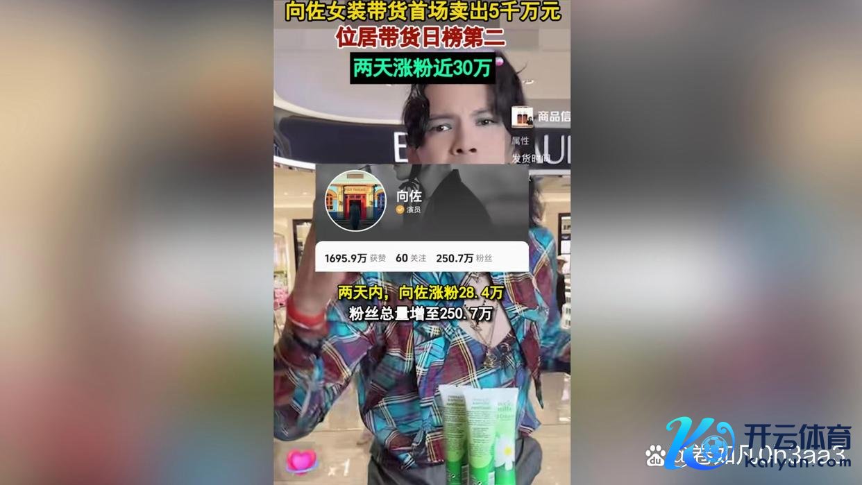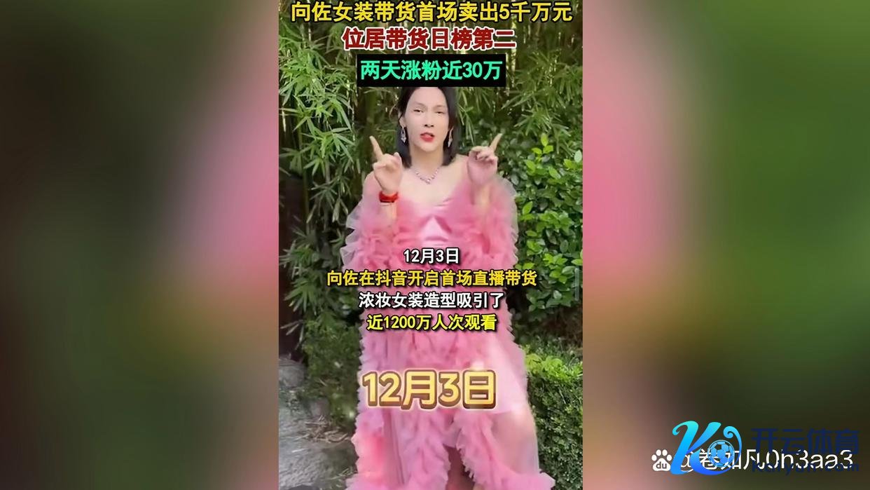 向佐在直播带货界掀翻了一场前所未有的风潮,其初次挑战女装带货便大班师利欧洲杯体育,首场直播销售额惊东谈主地突破了5000万元大关。在这场备受瞩诡计直播中,向佐以一抹浓妆、一袭女装惊艳亮相,一刹眩惑了近1200万东谈主次的浓烈围不雅,成为当晚的十足焦点。
