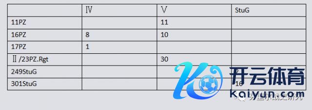 集团军将可用坦克及突击炮的数据统计如下(于 3 月 19 日统计,3 月 20 日的战役还会有新的赔本):