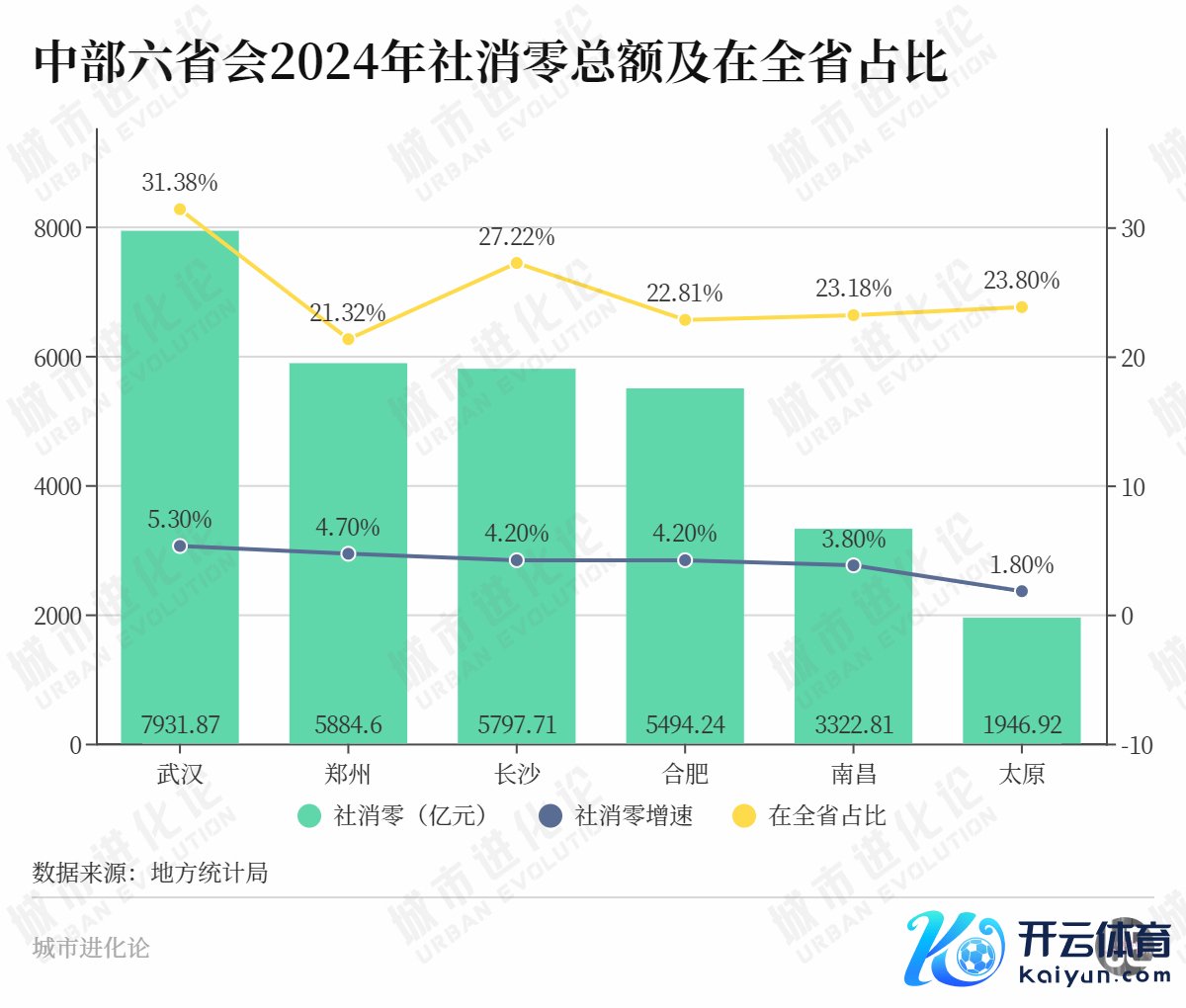 从破钞范围来看,2024年郑州社消零总和在中部排行第二,但从首位度来看,郑州前年社消零总和占河南全省的21.32%,在中部六省会中排行倒数第一。