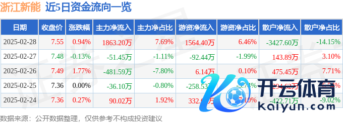 本站音信,死心2025年2月28日收盘,浙江新能(600032)报收于7.55元,飞腾0.94%,换手率1.3%,成交量31.22万手,成交额2.42亿元。