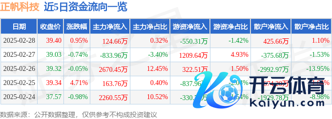 本站音问,截止2025年2月28日收盘,正帆科技(688596)报收于39.4元,高涨0.95%开yun体育网,换手率3.33%,成交量9.72万手,成交额3.89亿元。